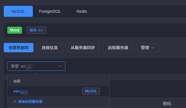 面板对于数据库管理很友好,可以很方便的托管非本机的mysql、postgresql、redis。