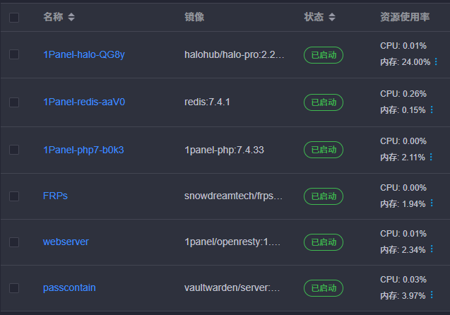 面板集成了docker,且自带相当的应用,方便一键安装,且可视化管理容器,如下图所示。