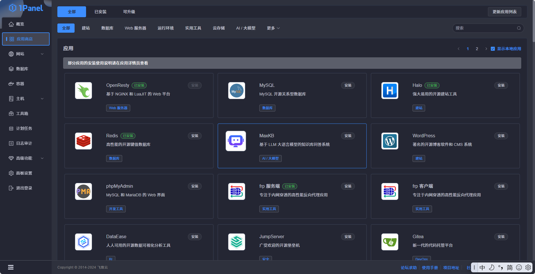 1panel是一款类似宝塔的面板,方便搭建各种应用等。