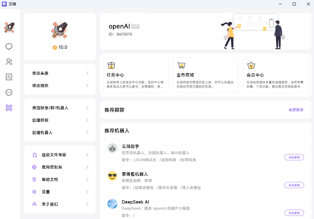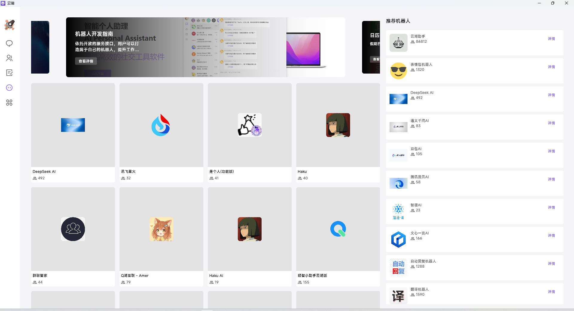 这是一个机器人社区,用户可以自己找到自己想用的机器人,比如deepseek。