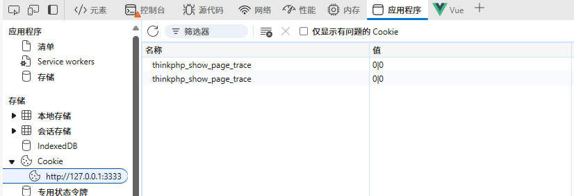 通过图片可以看到,php是响应了Set-Cookie头属性的,并设置了sessionid。然而在下面图片中的cookie表中完全没看到。