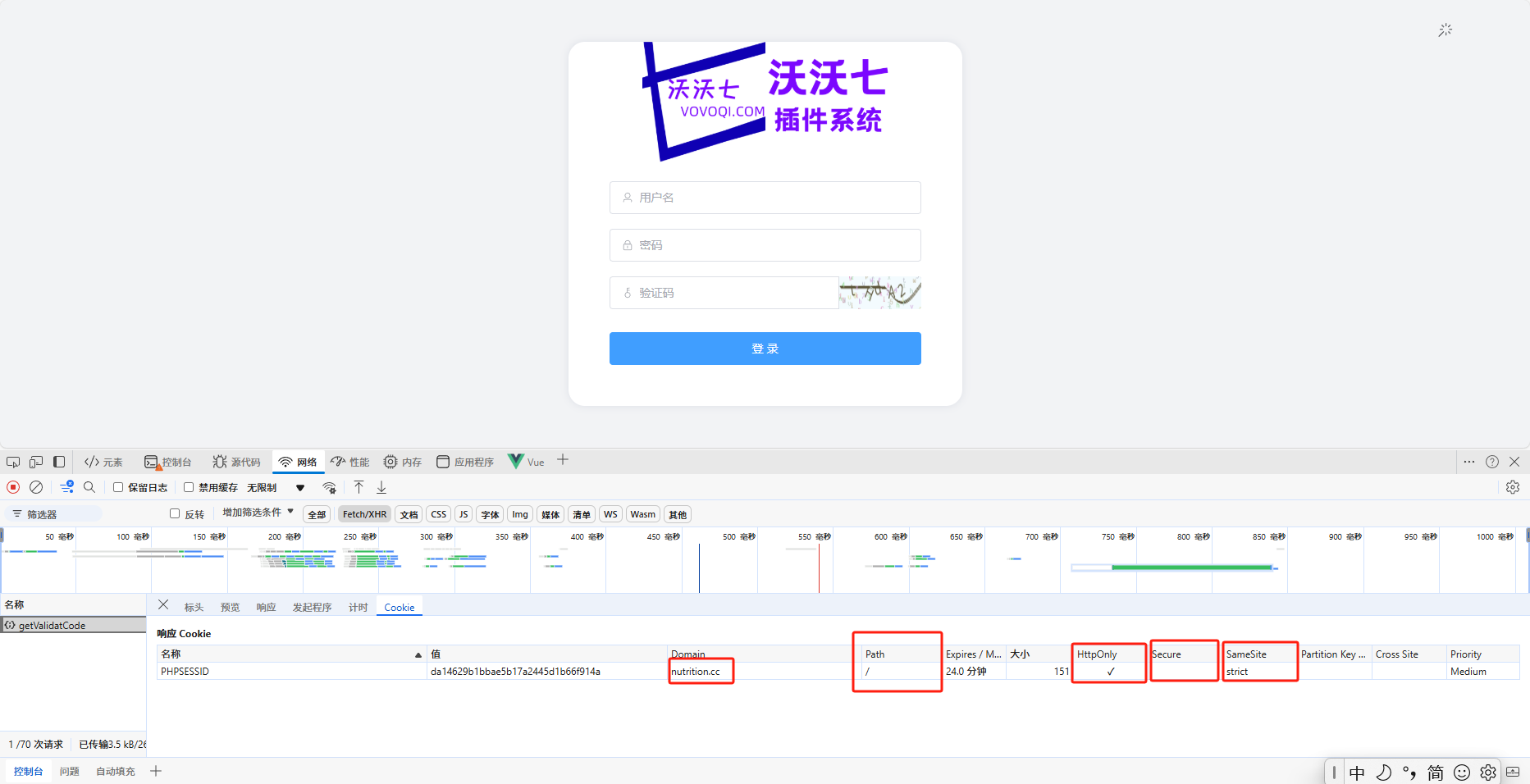 在解决完上述切换验证码组件的问题后,界面显示了验证码图片,本以为一切完美。结果,在校验时,却怎么都无法校验成功。由于之前有遇到过相同的情况,很快就联想到了是cookie问题。